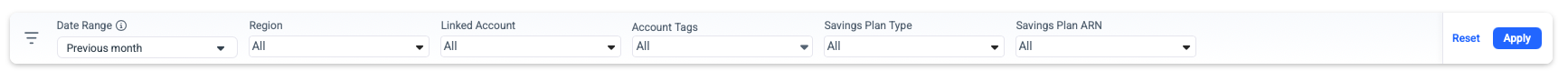 - Savings Plan Type: Filter by Compute, EC2 Instance, DataBases or SageMaker plans.