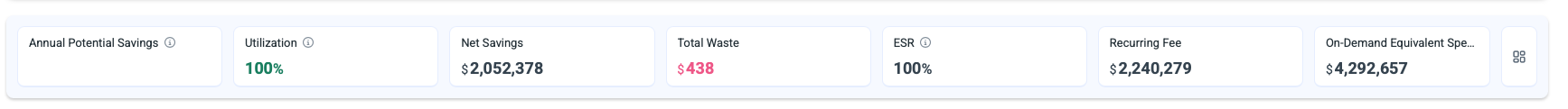 ESR: Effective Savings Rate (ESR) measures the actual percentage saved compared to On-Demand pricing across all your Savings Plans.