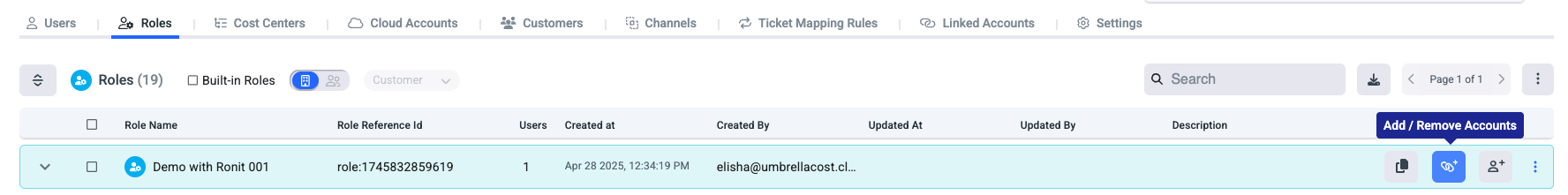 Add selective accounts to a role.