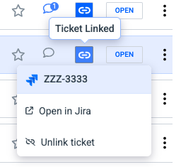 - The linked ticket can be unlinked by clicking the blue link icon and then clicking "Unlink ticket".